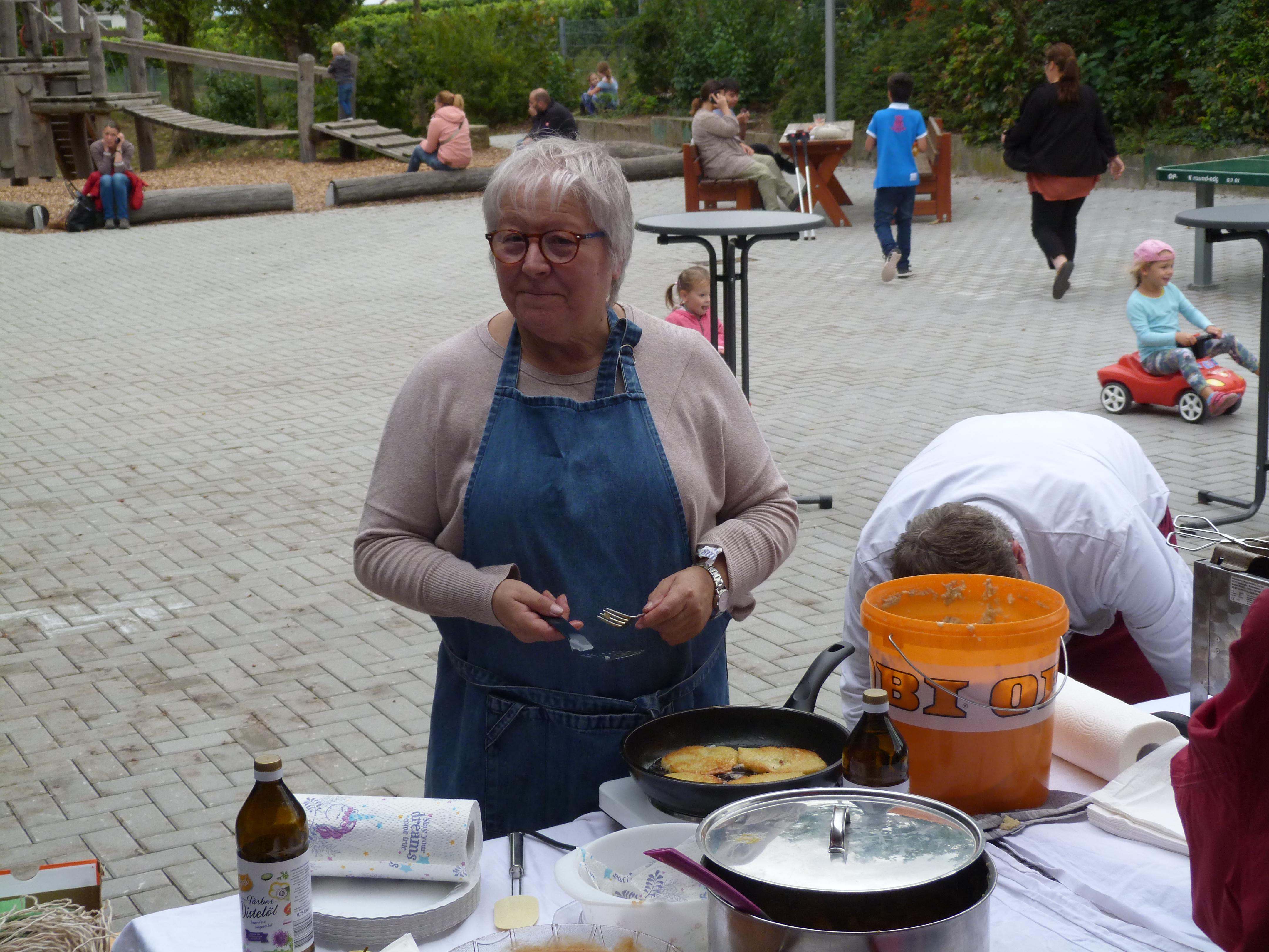 Das Wetter hat es gut gemeint mit den Besuchern des diesjährigen Apfelfests der Schulhofpaten an der Grundschule in Wiesoppenheim. Am Ende des Fests waren alle Kartoffelpfannkuchen mit dem von den Kindern am Vortag gefertigten Apfelmus verzehrt.