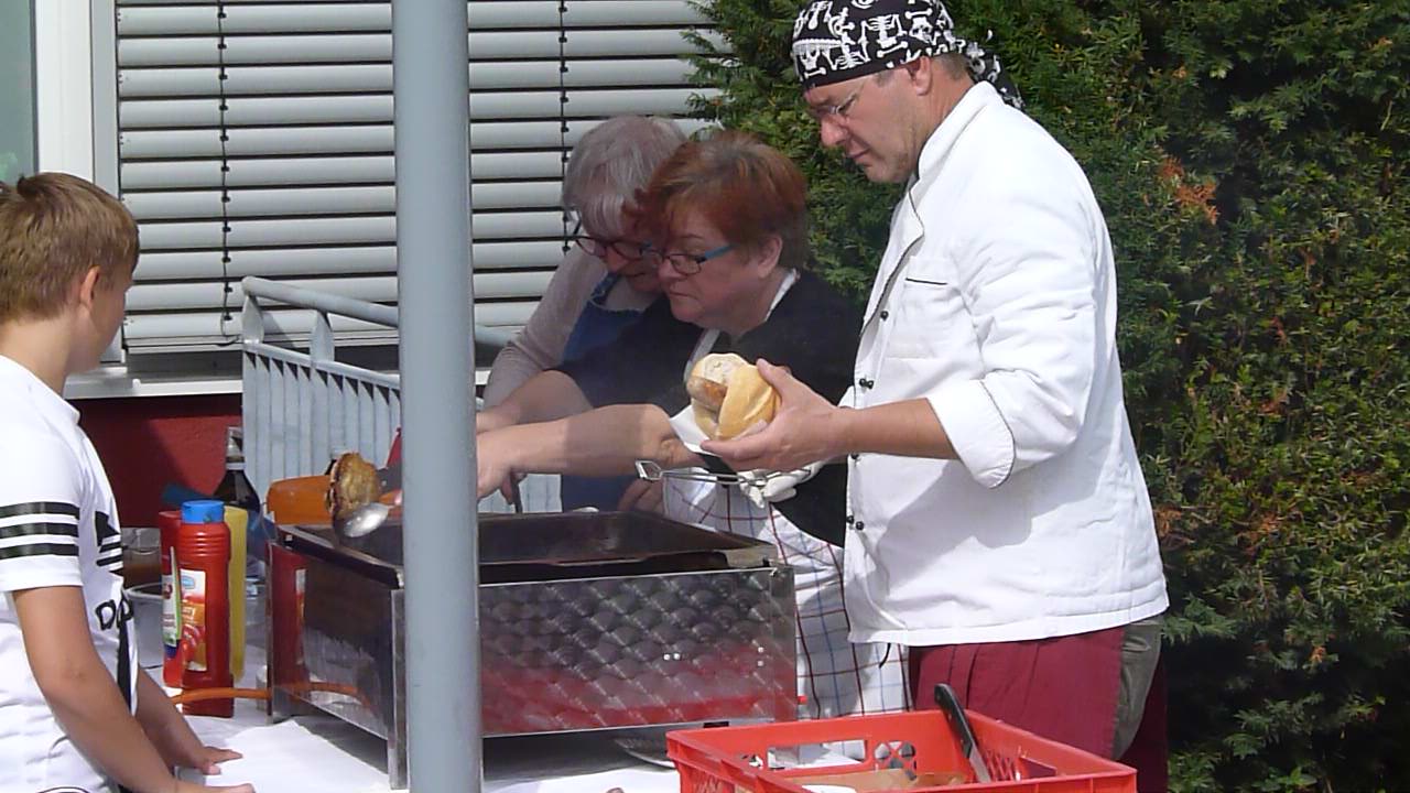 Die Eltern und alle anderen Gäste konnten sich beim Zuschauen mit Bratwurst, Kartoffelpfannkuchen mit Apfelmus oder mit Kaffee und Kuchen bequem einrichten. Natürlich wurden auch die Kinder versorgt.